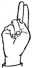 На ћирилици написано ПАУН АРСИЋ састоји се из 9 слова [?]. Исписано ћириличном једноручном азбуком за глувонеме: